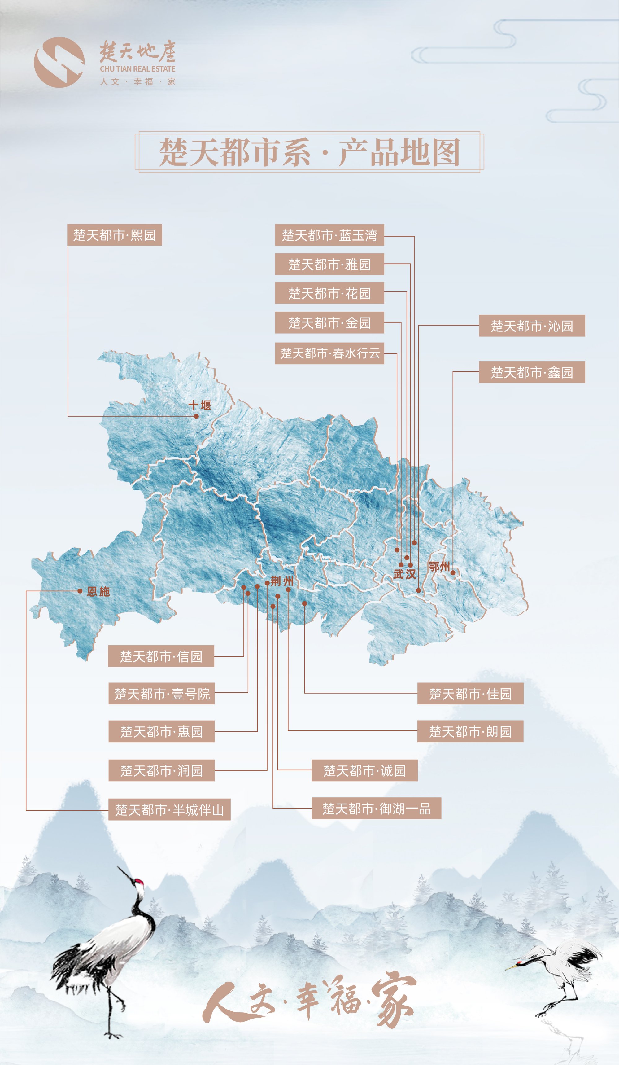 22年來(lái)的專注與堅持,楚天地産在探索幸福的道(dào)路上(shàng)收獲了數(shù)萬名業主家(jiā)人(rén),從紮根武漢,到深耕湖(hú)北,楚天地産的幸福足迹已踏遍全省,在武漢及省內(nèi)市、州開(kāi)發精品住宅項目超21個(gè)。