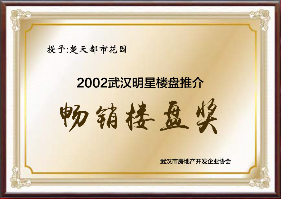 楚天都市花(huā)園獲“2002年武漢明(míng)星樓盤推介暢銷樓盤獎”