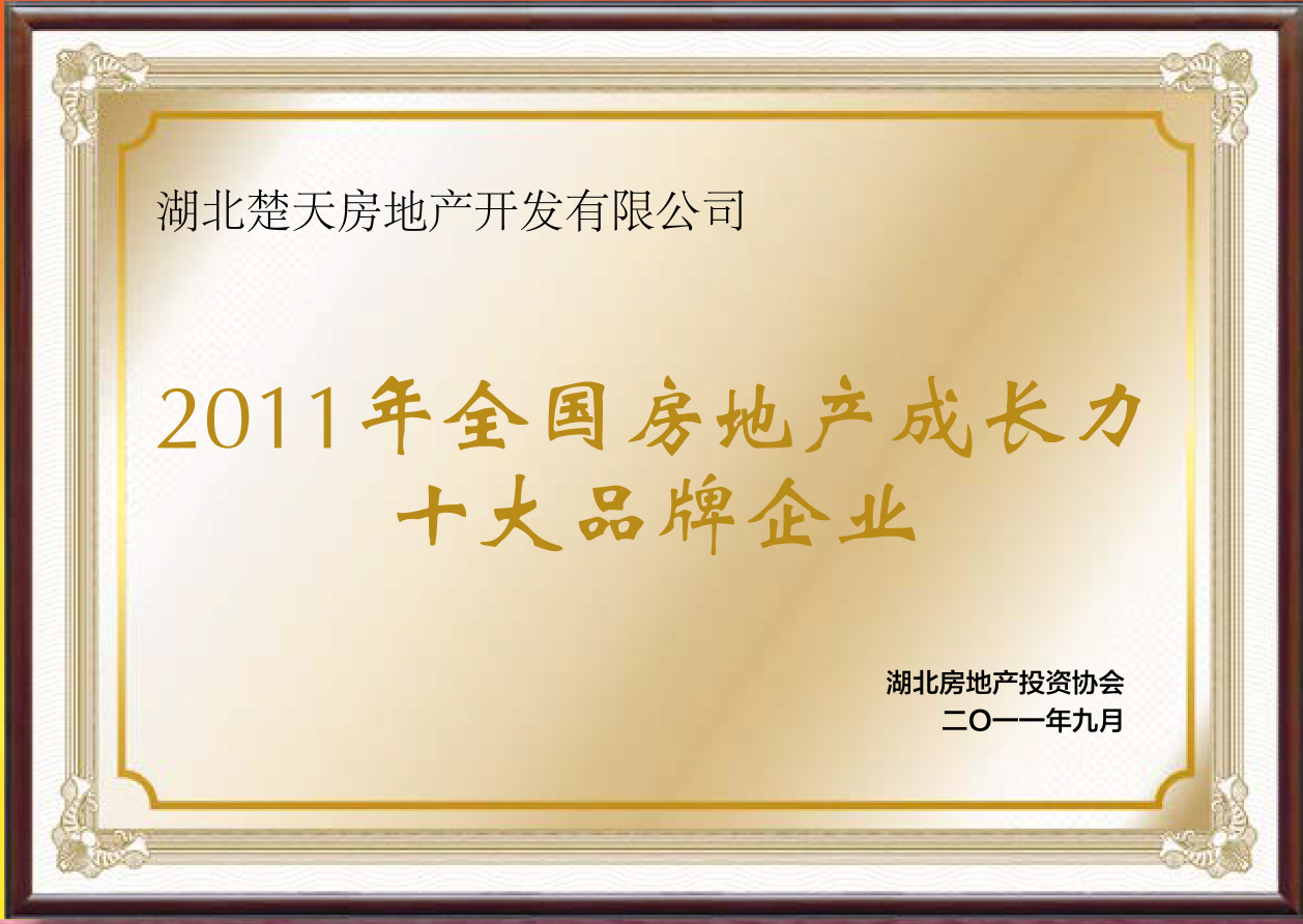“2011年全國房(fáng)地産成長力十大(dà)品牌企業”