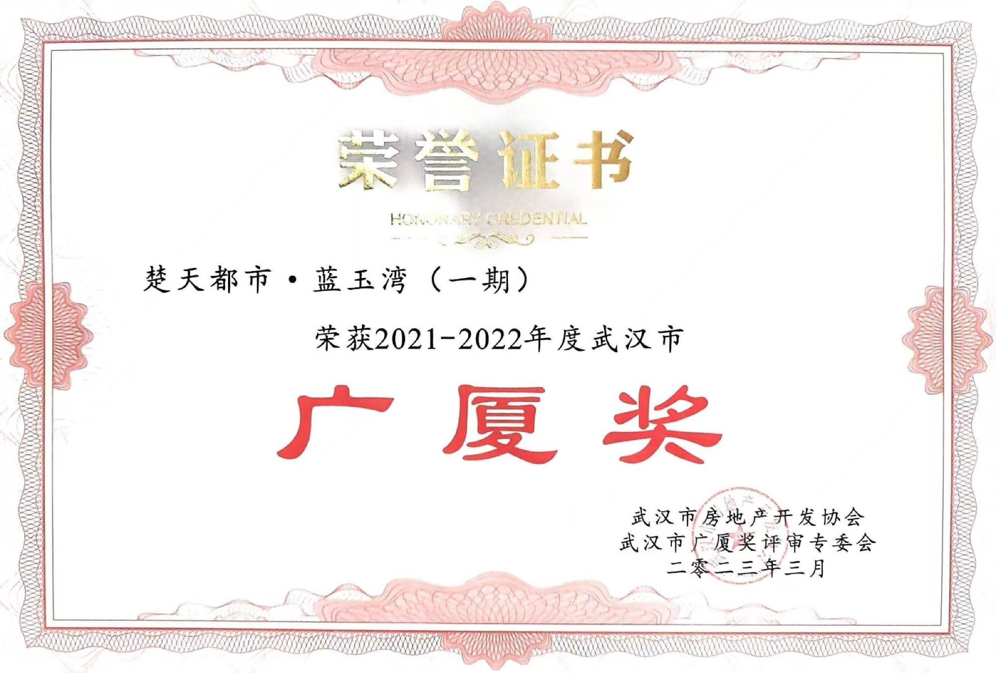 2023年4月,楚天都市藍(lán)玉灣項目榮獲武漢市“廣廈獎”